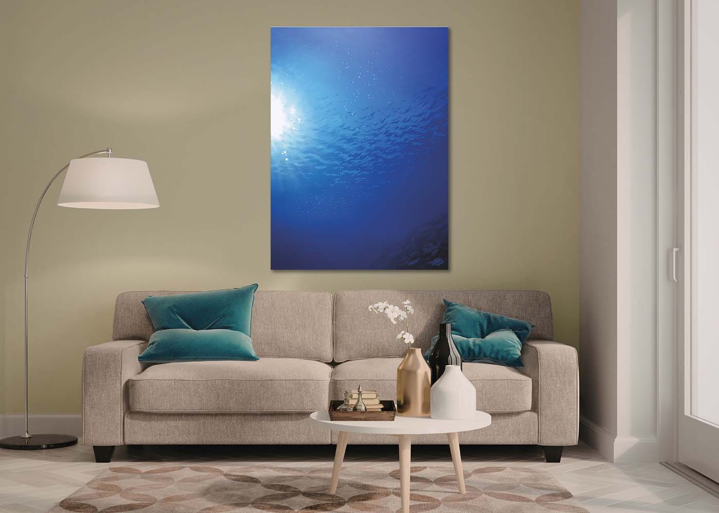 The sun shines through the deep blue water, and reflects off a multitude of silvery little fish – the more you look, the more you will find!